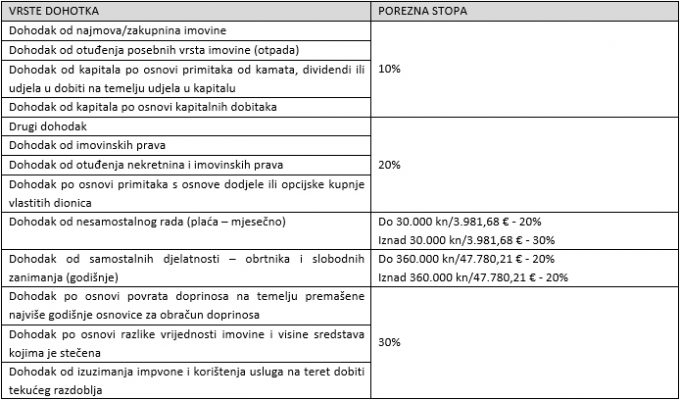 Sukladno Zakonu o porezu na dohodak (NN 115/16 do 138/20) u Republici Hrvatskoj trenutno su primjenjive dvije stope poreza na dohodak od nesamostalnog rada: